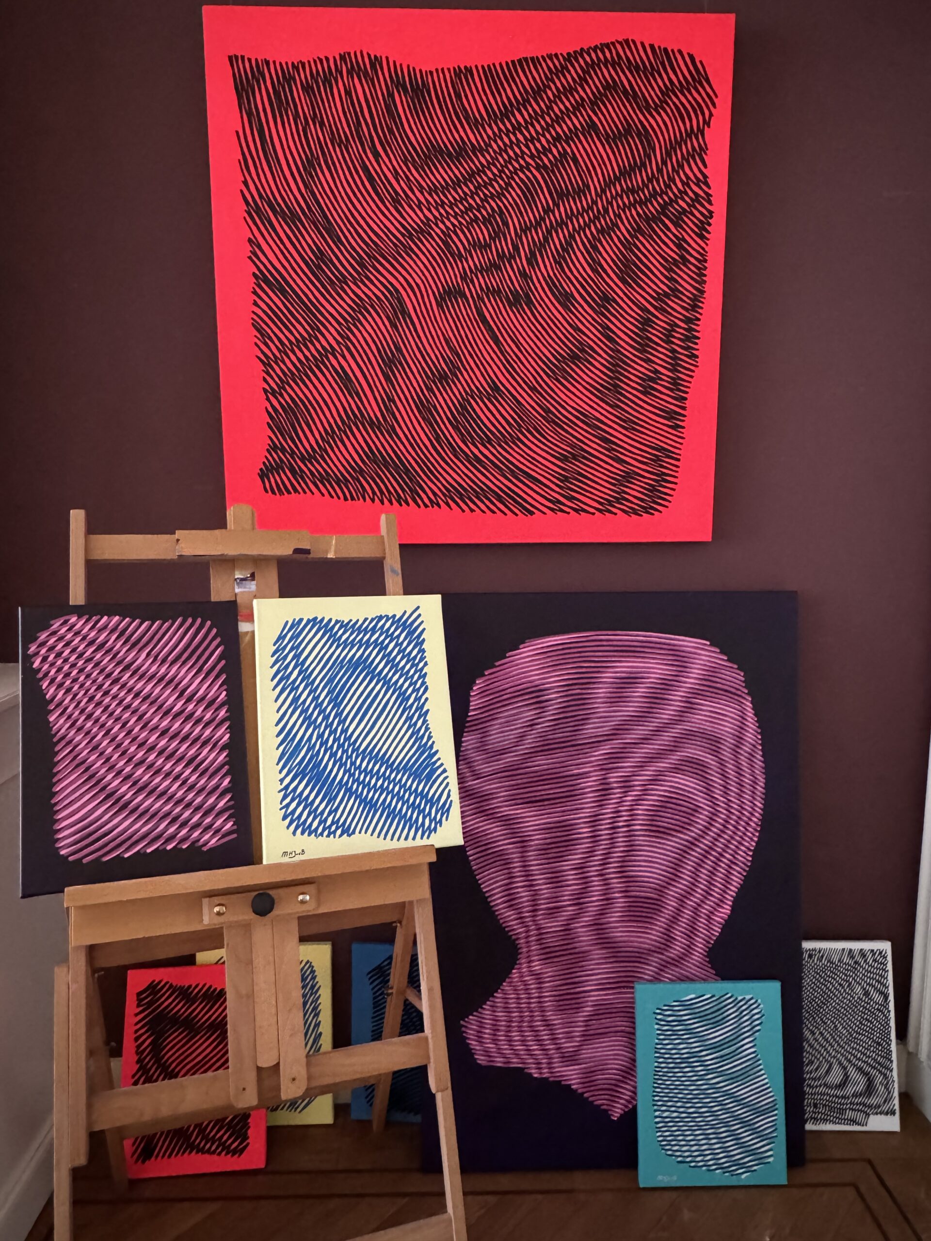 Ripplescapes are moiré patterns created when two layers of lines meet, like interfering waves or the ripples in the sand left by the tide on a beach.