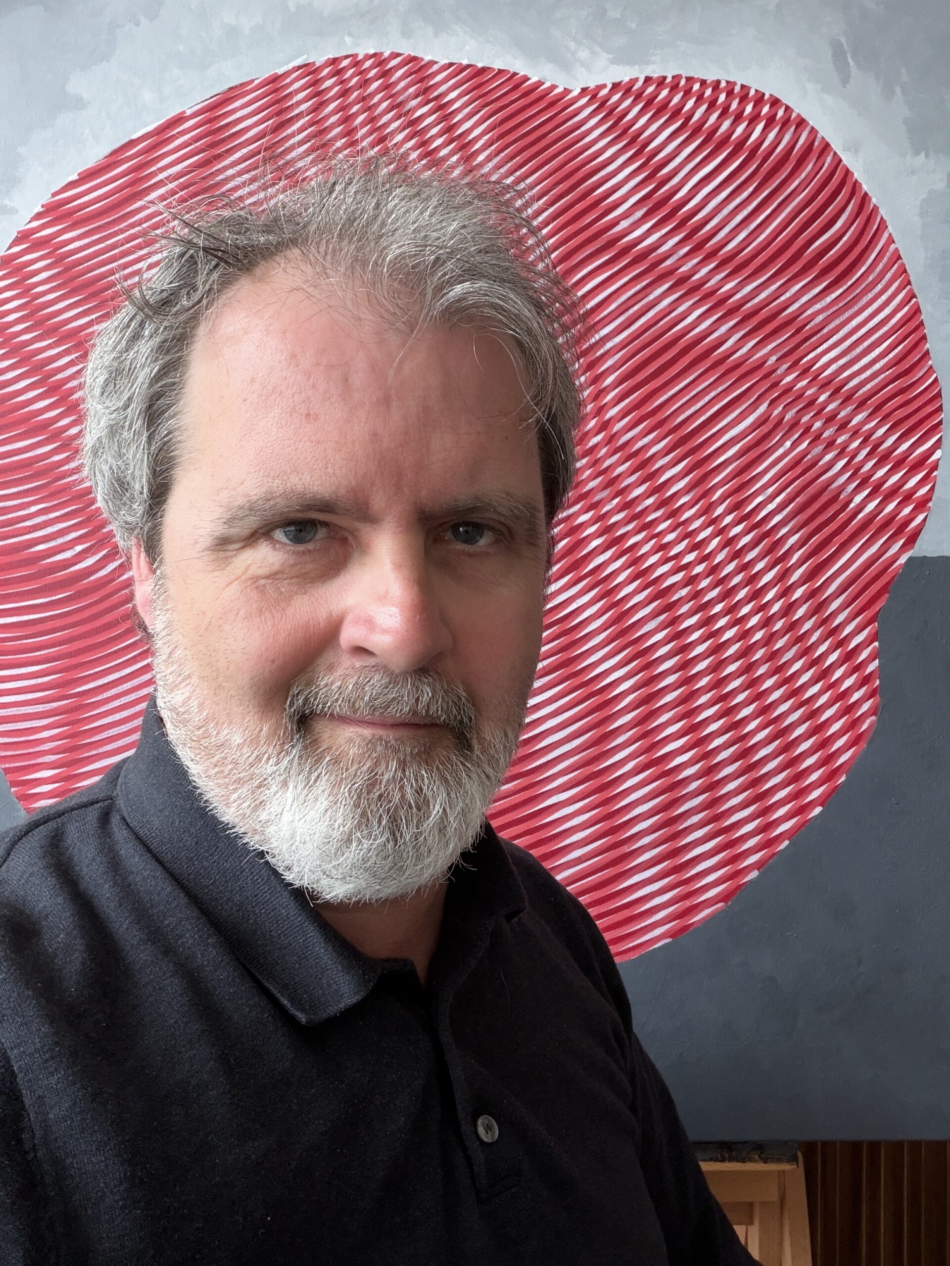 In 2024, Maarten moved his drawings from notebooks to canvas, trading pen for acrylic paint and ink, and called them Ripplescapes.