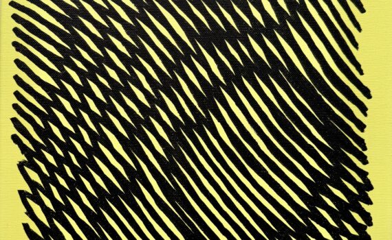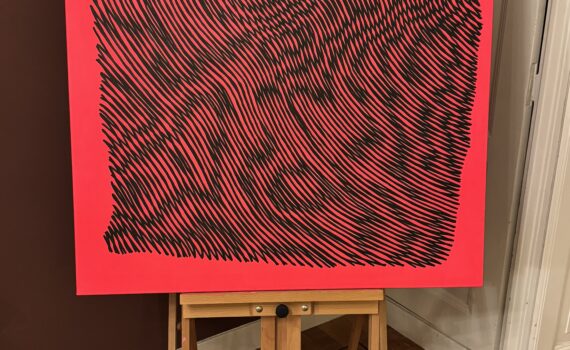 Ripplescape created while listening to ‘70s Sci-Fi soundtracks. I have named it ‘Close Encounter’, after the 1978 Sci-Fi film ‘Close Encounters of the Third Kind’, and in reference to the mysterious pattern that emerges from the intricate linework. (Acrylic paint and ink on canvas 80×120 cm).