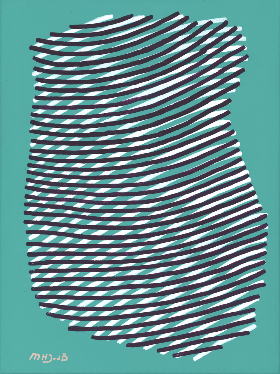The smaller one of a set done in a striking colour combination that highlights the intriguing pattern emerging from the linework.